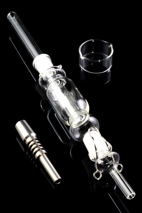 Regular price $38.99Unit price /UnavailableIn stock (95 units)Glass Dab Straw Kit “Titan Trail” – 14.5 mm Female – Titanium Tip – 11½″